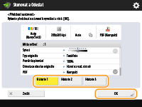 Na stroji lze vyvolat místa určení zadaná v minulosti. Současně s nimi se také vyvolají jejich nastavení skenování, např. sytost.