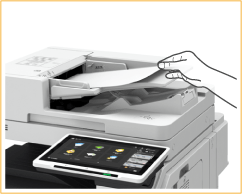 Podczas skanowania cienkich oryginałów (52 g/m² lub mniej) lub w rozmiarze oryginałów A6R lub mniejszym, należy podnieść element ustalający oryginałów.