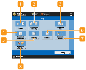Wyświetla status ustawień, takich jak format papieru do zadrukowania oraz liczbę wydruków. Upewnij się, że potwierdzono ustawienia, aby rozpocząć prawidłowy proces drukowania. Aby zmienić ustawienia, należy nacisnąć na przycisk znajdujący się pod wyświetlaną sekcją. Aby zmienić liczbę wydruków, należy wprowadzić żądaną liczbę za pomocą klawiszy numerycznych.