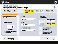 Introduza o campo de entrada de <Número de início>, utilizando as teclas numéricas.
