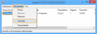 Se não conseguir encontrar o documento a cancelar, significa que o documento já foi enviado para a máquina. Nesse caso, não é possível cancelar a impressão no computador.