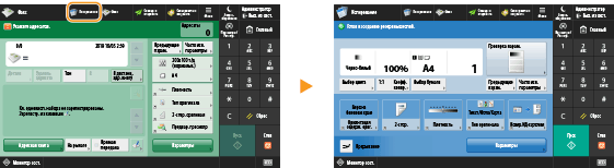 Для функций, представленных на экране <Главный>, можно создавать кнопки быстрого вызова. С помощью таких кнопок функции можно запускать, не возвращаясь на экран <Главный>. Для создания клавиши быстрого доступа необходимо войти в систему аппарата с полномочиями администратора. Вход в систему аппарата