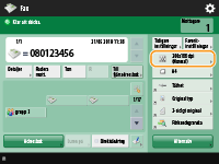 För att kontrollera status för skickade dokumentPå skärmen <Statusmonitor> kan du kontrollera statusen för skickade dokument. På den här skärmen kan du skicka fax igen eller avbryta sändning när du har kontrollerat statusen. Kontrollera status och logg för avsända och mottagna dokument