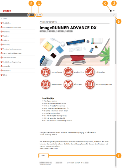 Klicka här för att få information om hur du visar Användarhandbok, gör sökningar och visar annan information.