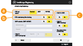 För att koda kommunikation till/från SMTP-servern med TLS, tryck på <På>. Om <På> har angetts, kan du bekräfta TLS-servercertifikatet vid kommunikation med servern och lägga till CN till verifieringsobjekt. <Bekräfta TLS-certifikat för SMTP-sändning>