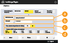 När du anger IP-adress, kontrollera om den användbara DNS-servern bara har stöd för sökning framåt. Om DNS-servern bara har stöd för sökning framåt, tryck på <Använd inte> eller <Använd> i <Autentiseringsinformation> i steg 4. När du väljer <Använd (säkerh.aut.)>, måste du kontrollera att DNS-servern har stöd för sökning bakåt.