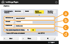 Exempel: När Windows domännamn är "exempel" och Windows användarnamn "anv1", skriv "exempel\anv1". Om du använder Lotus Notes Domino, ange ID-namn för autentiserad användare (dn) enligt följande: "cn=user1,ou=team1,ou=salesdept,o=canon".