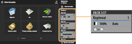 Pokud je volba <Omezit nové odesílání z výpisu> nastavena na <Zap>, historie funkcí „Fax“ a „Skenovat a Odeslat“ není v časové ose uchovávána.