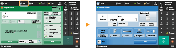 Pro funkce na obrazovce <Hlavní obrazovka> můžete vytvořit klávesové zkratky (tlačítka přímého přístupu). S pomocí této klávesové zkratky získáte přístup k jiné funkci, aniž byste se museli vracet na obrazovku <Hlavní obrazovka>. Chcete-li vytvořit klávesovou zkratku, přihlaste se do systému stroje s právy administrátora (správce).