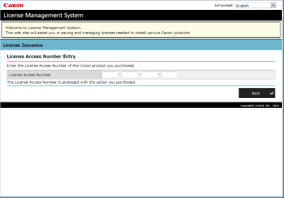Åbn en webbrowser for at gå til http://www.canon.com/lms/license/