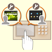 Maskinens betjeningsskærme, indstillinger og funktioner kan tilpasses efter brugerens præferencer. Dette kaldes "tilpasning".