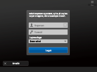 Afhængigt af indstillingerne for den visuelle meddelelse kan skærmen Visuel meddelelse blive vist inden login. For at logge på skal du først lukke skærmen Visuel meddelelse. Konfiguration af funktionen Visuel meddelelse