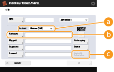 Du skal muligvis angive brugernavn og password. Indtast det brugernavn og password for den maskine, der er registreret på LDAP-serveren. Hvis godkendelsesinformation ikke bruges, skal du søge med tomme felter til brugernavn og password i Remote UI (Brugerinterface til fjernbetjening).