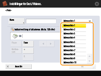 <Adresseliste 1> til <Adresseliste 10> kan betragtes som 10 separate adressebøger. Klassificerer du en adresseliste efter afdelinger eller efter forretningspartnere, er de nemmere at finde, når du angiver en modtager. Det er også nemmere at administrere en adresseliste, hvis du ændrer deres navne til navnet på afdelingen eller forretningspartneren (<Omdøb adresseliste>).