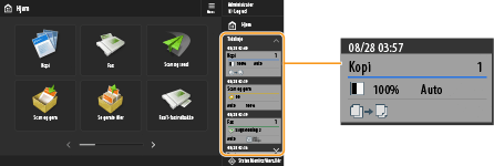 Tidslinjen er praktisk for brugere, der gentagne gange bruger de samme indstillinger og modtagere for en funktion, f.eks. "Kopi" og "Scan og send". Historikken for de indstillinger, der er brugt, føjes automatisk til tidslinjen, og kan anvendes til at genkalde de samme indstillinger.