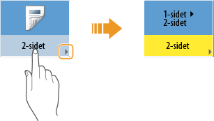Tryk på en knap, hvor er placeret nederst til højre, for at vise skærmbilledet til indstilling. Når indstillingen er udført, vises indstillingsstatussen i knappens øverste område, og farven i det nederste område ændres.