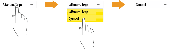 Tryk på en knap, hvor  er placeret til højre, for at vise dropdown-listen. Tryk på emnet på en liste for at vælge et emne.