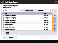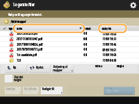 Hvis der er flere job/filer på en liste, kan du trykke på <Navn> eller <Dato/Tid> for at sortere listen over elementer. Når vises, vises elementerne i stigende rækkefølge, eller når vises, vises elementerne i faldende rækkefølge.
