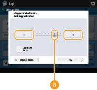 Tryk på knapperne <-> eller <+> for at forøge eller formindske værdier, som f.eks. justering af tætheden. Hver gang, du trykker på knappen, flyttes skyderen () for at forøge eller formindske den numeriske værdi. Du kan ændre værdien hurtigt ved at holde knappen nede.