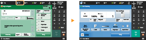 Du kan oprette en genvejsknap til funktioner på <Hjem>-skærmen. Brug denne knap til adgang til en anden funktion uden at gå tilbage til <Hjem>-skærmen. For at oprette en genvej skal du logge ind med administratorrettigheder.