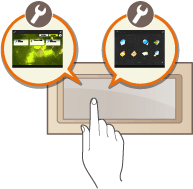I dette afsnit beskrives, hvordan du arrangerer knapper og tilpasser menuer og gør det nemmere at bruge de skærmbilleder, der vises på touchpanelet.