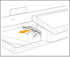 Hvis papiret delvist er ude fra den nedre side (indgangssiden) på fikseringsenheden, skal du forsigtigt trække papiret i nedadgående retning.