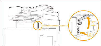 Data, der er gemt i maskinen, kan beskadiges, hvis Avanceret område (delt område på en anden maskine) tilgås fra en Canon-multifunktionsprinter* eller en computer umiddelbart inden, maskinen lukkes ned.
