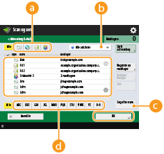 Angiv modtageren på skærmbilledet Grundlæggende scanningsfunktioner. Skærmbilledet Grundlæggende scanningsfunktioner