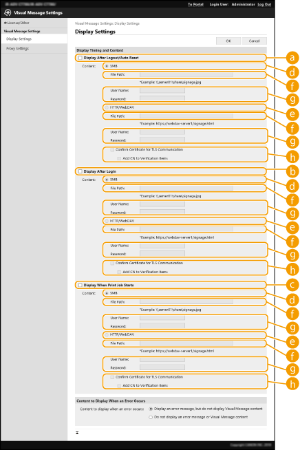 Klik på [License/Other] [Visual Message Settings]  [Display Settings].