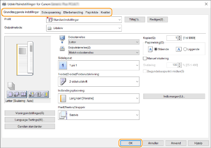 Skift faner efter behov for at angive de ønskede printningsindstillinger.