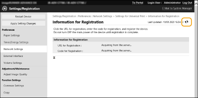 Klik på [Network Settings]  [Settings for Universal Print].