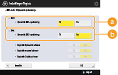 Tryk på <Primær DNS-server>, og indtast en IPv6-adresse for DNS-serveren. Du kan ikke indtaste adresser, der starter med "ff" (multicast-adresse), adresser der kun består af "0" eller local link-adresser.