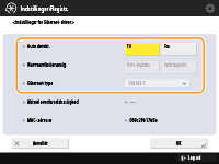 Normalt skal du trykke på <Til> i <Auto detekt.>. Kommunikationssystemet og Ethernet-typen registreres og konfigureres automatisk.