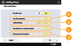 Når <Kræv kryptering for forbindelse> er indstillet til <Til>, kan maskinen kun oprette forbindelse til SMB-servere, der understøtter SMB v3.0-krypteret kommunikation. Når <1,0> og <2,0> er indstillet til <Til> for <Angiv SMB-klientversion>, men <3,0> ikke er indstillet til <Til>, kan maskinen ikke oprette forbindelse til SMB-servere, der ikke understøtter SMB v3.0-krypteret kommunikation.