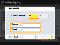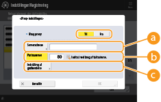 Tryk på dette for at angive godkendelsesoplysningerne, når du bruger en proxyservers godkendelsesfunktion. Tryk på <Til> på den viste skærm, angiv brugernavnet og adgangskoden til proxygodkendelse, og tryk på <OK>.