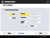Du kan indstille IP-adressen manuelt ved at rydde markeringen for <DHCP> eller <Auto-IP>, trykke på <IP-adresse>, <Subnetmaske> og <Gatewayadresse> for at angive hver enkelt værdi og trykke på <Næste> eller <OK>.