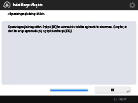 Hvis du vil forbedre maskinens sikkerhed ved at deaktivere administratorbrugeren og registrere en ny administrator, skal du trykke på <Ja>. I <Registrér Administrator> skal du indtaste <Brugernavn> og <Password> og trykke på <OK>. Angiv <E-mailadresse>, <Afdelings-ID> og <Vis navn> efter behov. For flere informationer skal du se Registrering af brugerinformationer i den lokale enhed. Administratorbrugeren deaktiveres, næste gang du logger på.