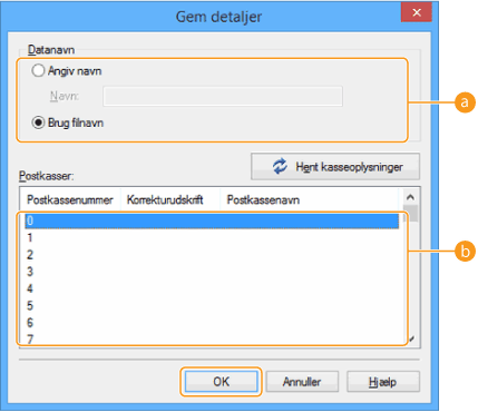 Det boksnavn, der er registreret i maskinen, kan anvendes til printerdriveren. For detaljer kan du se hjælpen til printerdriveren.