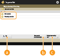 Tryk på <Op> for at gå til det øverste niveau for den aktuelle. For at opdatere indholdet på det viste skærmbillede skal du trykke på <Opdatér>.