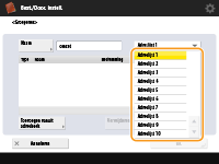 (e-mail), (fax), (I-fax) of (file) om de bestemmingen te filteren die in de adreslijst worden weergegeven ( ). Druk op <Alle> om alle opgeslagen bestemmingen weer te geven. Bestemming