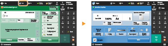U kunt een snelkoppeling aanmaken voor de functies op het <Home>-scherm. Gebruik deze knop om een andere functie te openen zonder terug te gaan naar het <Home>-scherm. Om een snelkoppeling aan te maken, meldt u zich aan met beheerdersbevoegdheden.