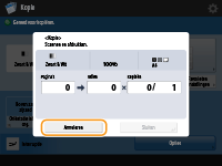 Als u op  (Stop) op het bedieningspaneel drukt terwijl het scherm met basisfuncties voor kopiëren wordt weergegeven, wordt de kopieeropdracht onderbroken, en worden het bericht <<Stop>Select. de kopieeropdr. die u wilt annuleren.> en de lijst met kopieeropdrachten weergegeven. U kunt de kopieeropdracht uit de lijst selecteren en de opdracht annuleren door op <Annuleren> te drukken.