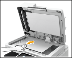 Zorg ervoor dat u niet te hard duwt bij het plaatsen van het origineel. Anders wordt het origineel misschien niet goed ingevoerd of treedt een papierstoring op.