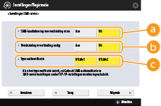 Als u het authentificatietype instelt, wordt de instelling voor <Gebruik SMB-authentificatie> bij <Instellingen SMB-server> met <Aan> ingeschakeld. <Instellingen SMB-server>