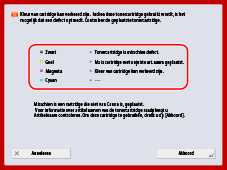 Herstart de machine. Als het bericht na het herstarten van de machine nog steeds wordt weergegeven, noteert u het bericht en neemt u contact op met uw dealer of verkoper.
