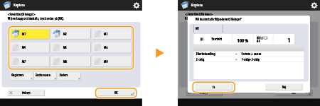 Om ovanstående meddelanden visas vid registrering av <Favoritinställningar> för <Scanna och skicka> utför du följande åtgärder. Om du vill återkalla favoritinställningarna utan att ange ett lösenord trycker du på <Ja> för att behålla lösenordsinformationen.