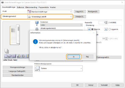 Schemalagda utskriftsjobb utförs enligt den tid som angetts i maskinen. Kontrollera i förväg att tiden som angetts i maskinen stämmer överens med datorns tid.