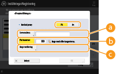 Tryck här för att ställa in autentiseringsinformationen när du använder autentiseringsfunktionen för en proxyserver. Tryck på <På> på skärmen som visas, ange användarnamn och lösenord för proxyautentisering och tryck på <OK>.