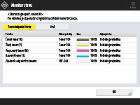 I když je v okně <Zbývající dny> zobrazeno upozornění <Potřebuje výměnu>, neprovádějte výměnu, dokud se v oblasti zobrazení stavu nezobrazí zpráva vyzývající k výměně spotřebního materiálu (ve spodní části displeje dotekového panelu).