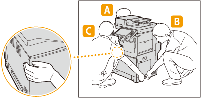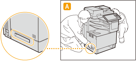 Не переносите аппарат с установленным дополнительным кассетным модулем или модулем загрузки кассеты. Это может привести к поломке или травме. См. инструкцию по установке из комплекта каждого из дополнительных модулей, чтобы получить информацию о порядке их отсоединения.